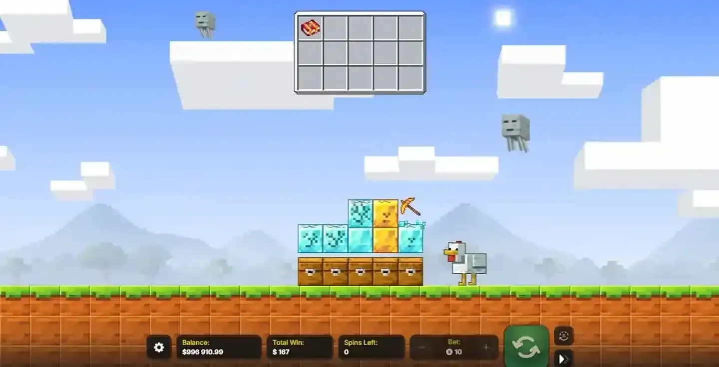 Descubrà este juego tragaperras de Minecraft hace un mes y no he parado de jugar. La versión online funciona perfectamente en el móvil y las animaciones son fluidas. Recomiendo probarlo primero en modo demo para familiarizarse con las funciones especiales.